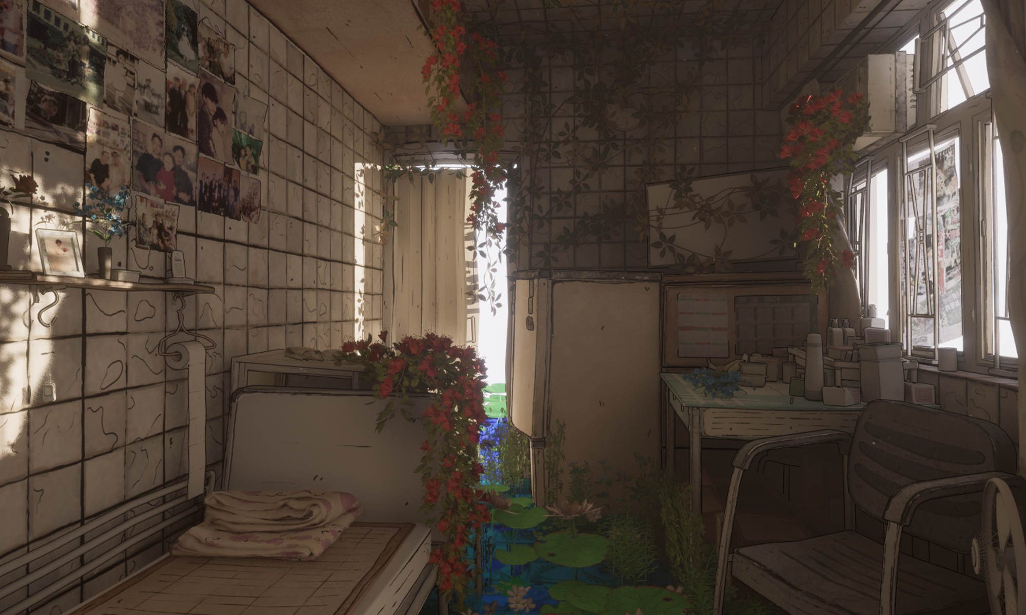 給我至愛的嫲嫲 - Forget Me Not, is a homage to my grandma who lives in Hong Kong. Spending time with her this summer made me realise how fast time flies and how it can affect all those around myself personally, and especially her. I wanted this project to be about her and represent her struggles with Alzheimer's Disease through my environment work. I have used symbolism and metaphors relating to Alzheimer's Disease to tell a story and celebrate the life she has now and once did through the flat that she resides in.