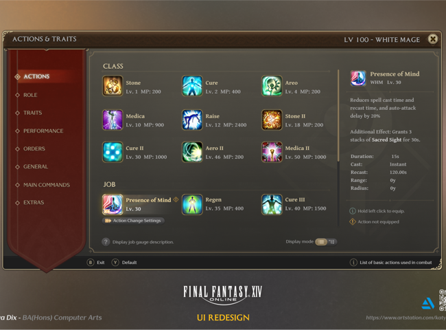 My project is about redesigning the user interface of a game called Final Fantasy XIV. This project will explore how to improve the usability of the interface and modernising the aesthetics.