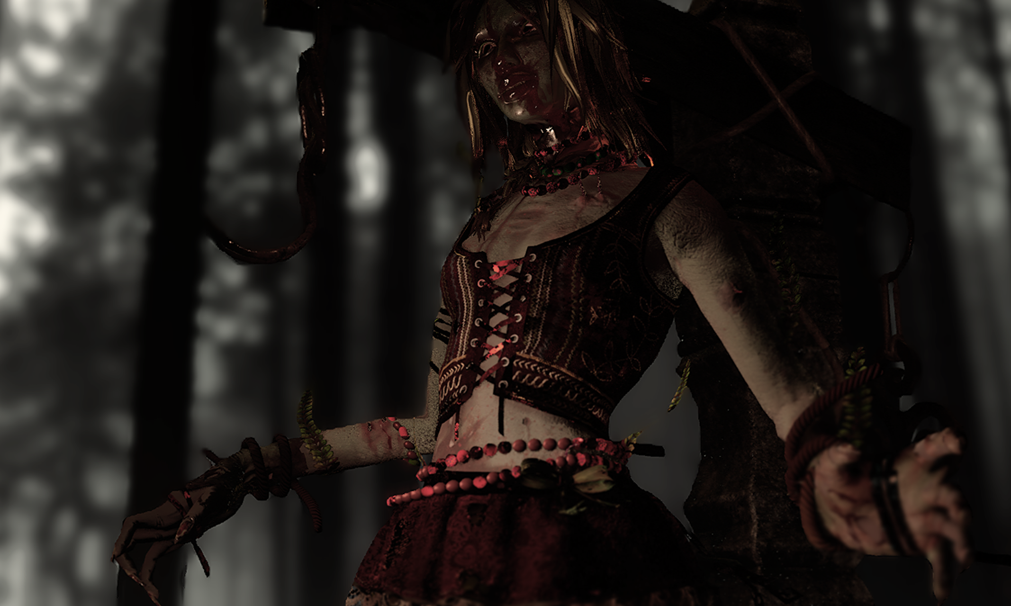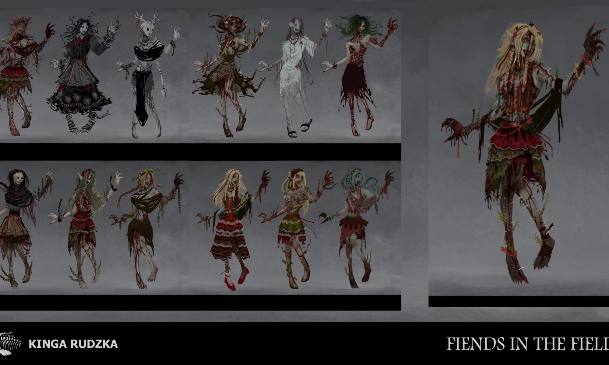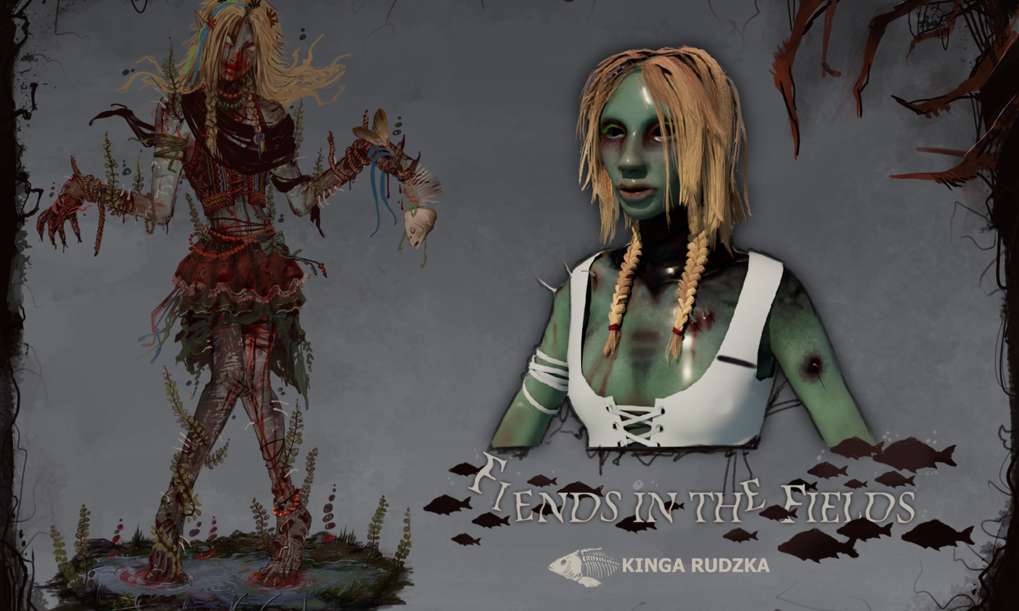 This project explores the contrast of beauty and horror within the portrayal of women in Polish mythology, combining it into one character and presenting it in the form of a 3D model ready for game implementation. Inspired by the tales of Rusalkas; strikingly beautiful or disgustingly grotesque water nymphs that lure men into their grasps with their beauty and playfulness, only to take their life. Incorporating traditional Polish attire and culture into the design, the project also explores how Dead By Daylight specifically handles its killer characters, looking at both visual design and technical optimisation.
