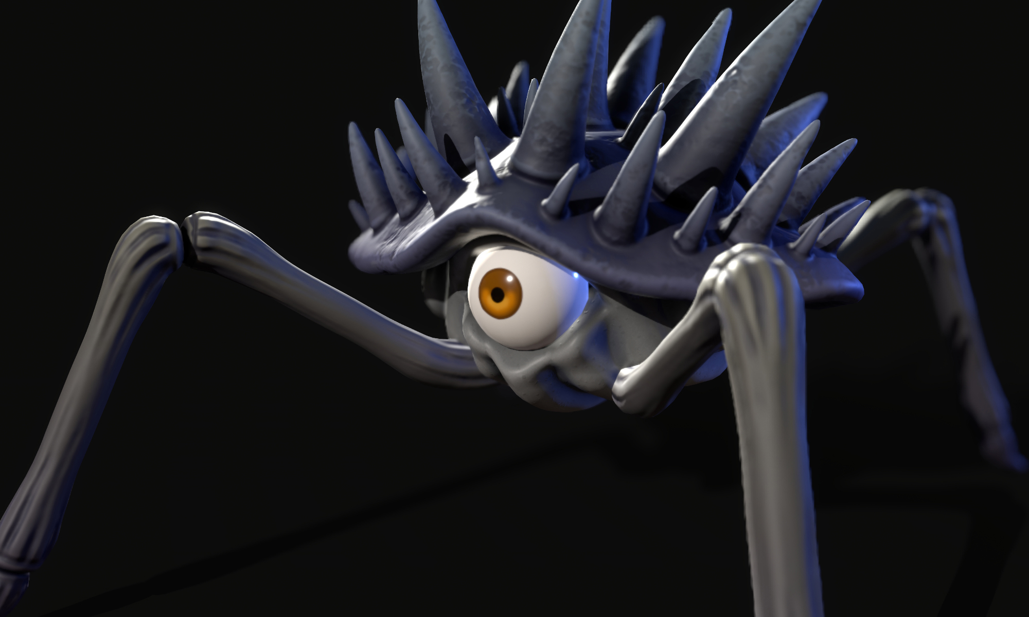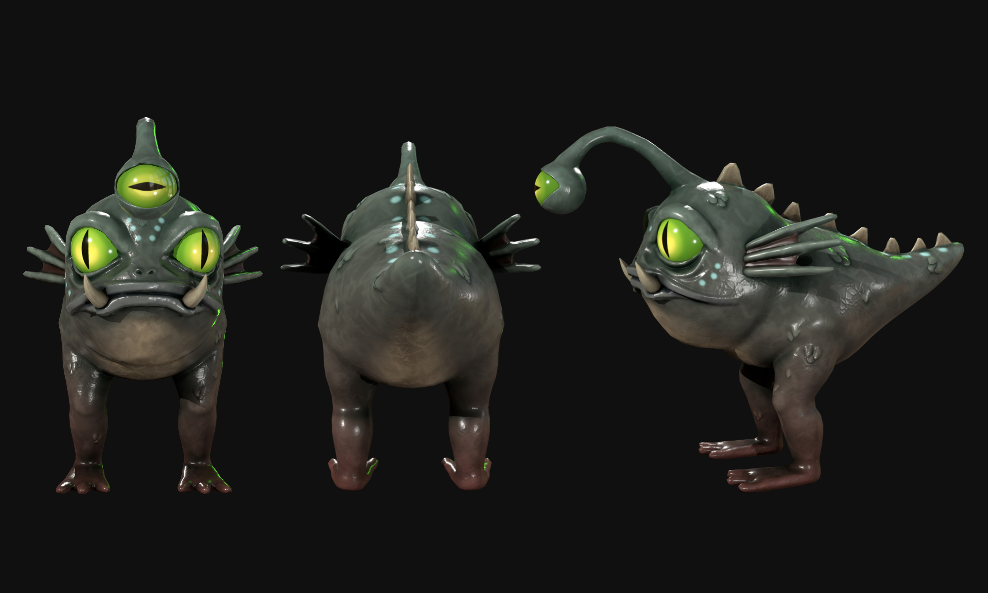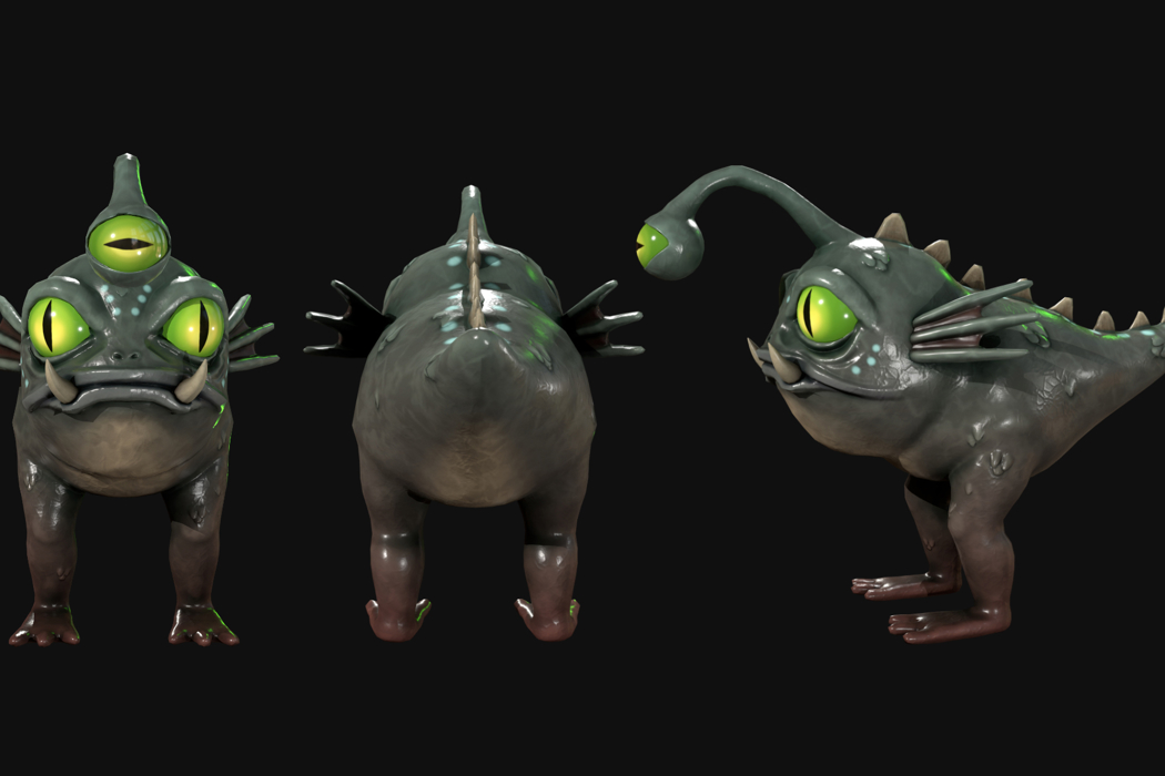 These stylised, 3D creatures were designed and created for ‘The Blind God’ which is a first-person shooter game with light deck-building mechanics. This game was developed alongside 3 other Abertay students as a collaborative Honours Project. My research was focused on two main areas namely; designing and creating a series of unique, fictional creatures that function with a core mechanic in the game (that their eyes are their weak point and are therefore the main target that the player should be aiming for) as well as ensuring that these creatures aligned with the environment that was designed and created by the team's environment artist.