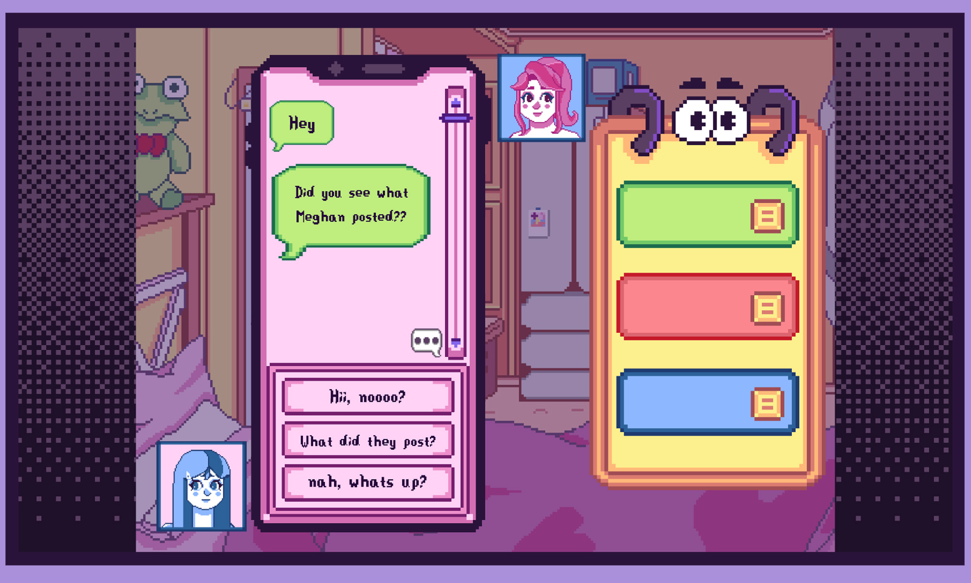This project is to create a game concept around my daily struggles with communication and interpersonal relationships, specifically around text messaging when I can’t indicate tone and mannerisms through voice and facial cues. This could be a project to create a better understanding of neurotypical people and showcase the daily struggle others face. This project will draw from my own experiences and scenarios where I’ve felt discrimination for how I’ve spoken or acted. I’m also taking inspiration from frustrations I’ve faced whilst doing therapy as my brain thrives on interactivity and practical tasks. I’m motivated to create something personal and open myself up in the hopes to inspire helping others and improving my own health. This project will help improve my skills in game development and help me focus on getting the correct skills for my future line of work in the game industry.