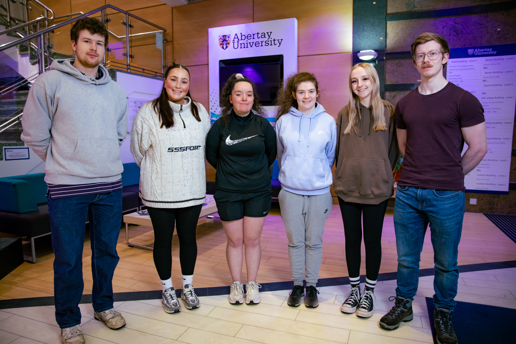 Participants included Ilona Brown (Sport and Exercise Programme), Jacok Dalland (Sport and Management Programme), Jonny Garden (Strength and Conditioning Programme), Lucy Hunter (Sport and Exercise Programme), Esra Sarac (Sport and Exercise Science Programme), Ruby Swain (Physical Activity and Health Programme), and Reuben Tanner (Sports Development and Coaching Programme).